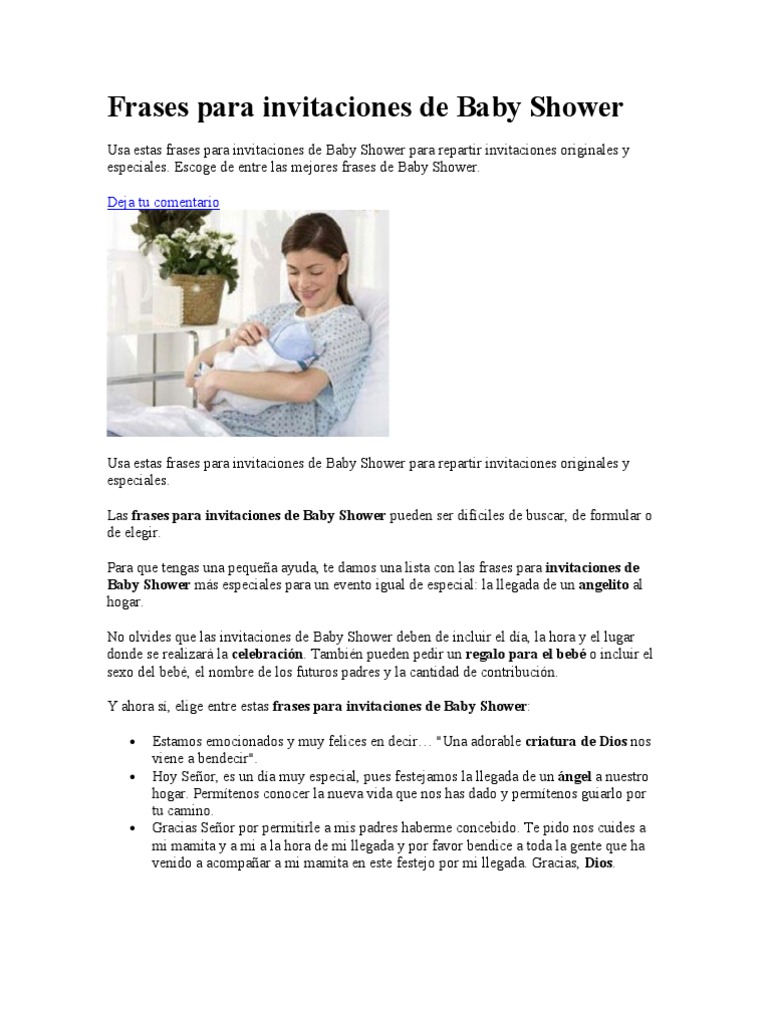 Frases para invitacion baby shower. Frases para invitación al Baby Shower. Los Baby Shower son festividades en los últimos tiempos muy extendidas en el mundo para dar la bienvenida a esa criatura flamante llenos de amor y esperanza. Web aplicaciones y eventos sociales.