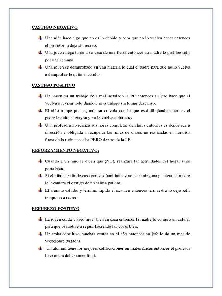 Un ejemplo muy claro parecido al de ver el vaso medio lleno o medio vacío es si nuestro hijo saca un 5 en un examen. Los siguientes son algunos ejemplos de refuerzo negativo. OBJETIVOS Definir y dar ejemplos de reforzamiento negativo Distinguir entre contingencias de escape y evitación Describir los eventos que pueden servir de base al reforzamiento negativo Ilustrar formas en que el reforzamiento negativo puede ser usado para fortalecer conductas Revisar problemas éticos que pueden resultar cuando usamos reforzamiento negativo. Además los refuerzos positivos también pueden ser una gran. Dentro del aprendizaje por reforzamiento distinguimos dos tipos de consecuencia. El refuerzo negativo anima a los empleados a obtener mejores resultados para evitar una. 1 Qué es el refuerzo positivo y ejemplos de esta forma de motivar.